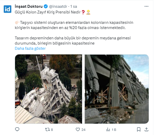 İnşaat doktoru sosyal medya hesabı X'ten ''Güçlü Kolon Zayıf Kiriş Prensibi Nedir?' sorusunun yanıtladı. İşte o paylaşım...