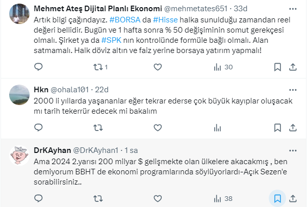 - Spekülatörler yeniden ortaya çıkıp küçük yatırımcıyı sağabilir. Küçük yatırımcılar çok dikkatli olmalı. Hep söylediğim gibi borsa oyun alanı değildir. Borsada hisse senedi alıp bir şirketin ortağı oluyorsun. Küçük yatırımcı lütfen bir şirketin ortağı gibi davransın.