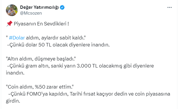 14,9 takipçili Değer Yatırımcılığı isimli kullanıcı, https://twitter.com/Mcsozen X sosyal medya hesabından yaptığı paylaşımda bu konuya dikkat çekerek, “Sorun piyasada değil” diyerek, yapılan hataları ve olması gerekenleri anlattı. İşte o paylaşım...