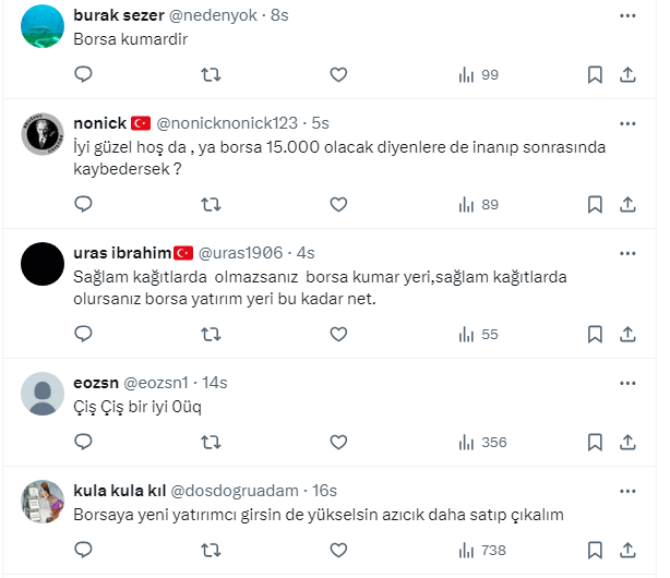 Borsa 12.500-15.00 bandına geldiğinde, hisseler tarihi zirve fiyatlarındayken geleceksin ve yine kaybedeceksin.