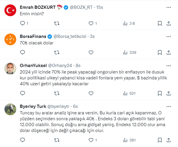 Tuncay Turşucu, doların 29,50 TL’ye gerilemesi halinde İstanbul Borsası’nın uçuşa geçeceğini, insanların hisse senedine hücum edeceğini ifade etti. Endeksin yıl sonunda 12 binlerin de üzerine çıkabileceğini belirtti.