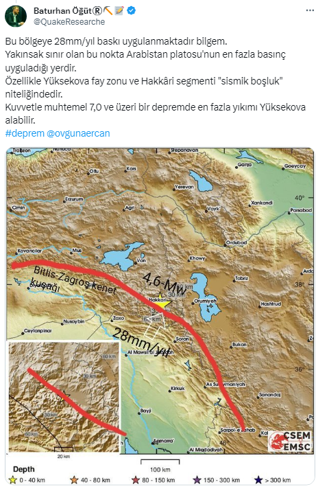 "Yüksekova pay zonu ve Hakkkari segmenti, sismik boşluk niteliğindedir"
