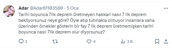 "Tarihi boyunca 7'lik deprem üretmeyen Hakkari'de nasıl 7'lik deprem bekliyorsunuz, neye göre?"
