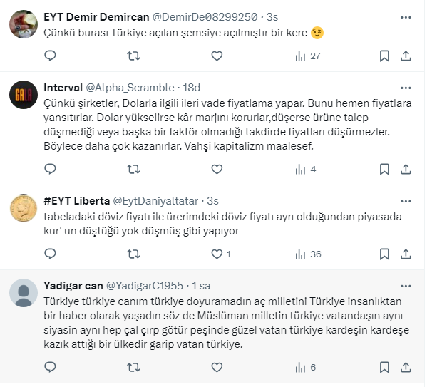 Takipçileri fırsatçıların çokluğundan yakınırken dövizin de düşmediğini söyledi.