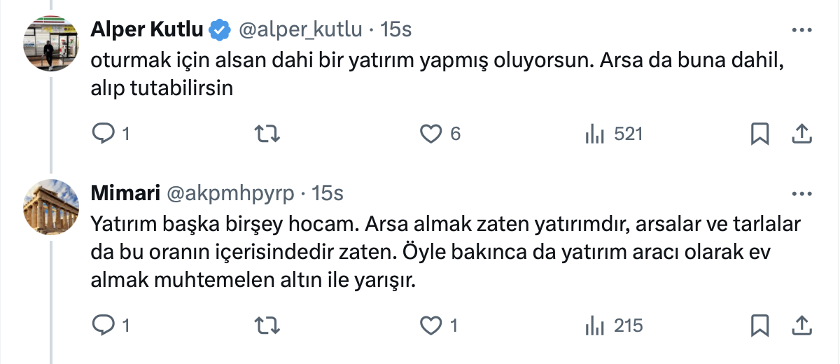 İnşaat Mühendisi Alper Kutlu'nun paylaşımı şu şekilde: