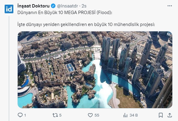 İnşaat sektörü ile ilgili paylaşımları ile dikkat çeken 20,3 bin takipçili, uzman kadro İnşaat Doktoru resmi X hesabı üzerinden dünyanın en büyük 10 mega projesini paylaştı.
