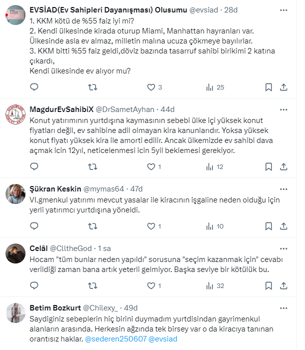 Yılmaz, konut piyasasındaki tüm bu olumsuzlukların, düşük faiz politikası ve KKM işbirliğinin sonucu olduğunu söyledi.