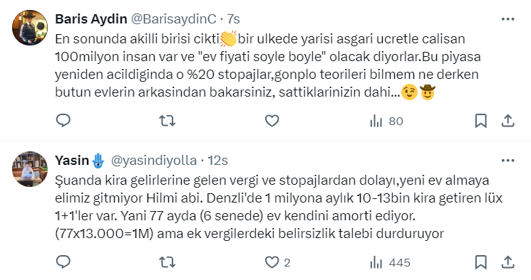 Açıklanan rakamlara göre İstanbul'daki konut fiyatlarında, ölçülebilen son 14 yılın en yüksek reel fiyat düşüşü görülürken, 12,6 bin takipçili Hilmi Bozdağ, sosyal medya hesabı https://twitter.com/hilmibozdag_ üzerinden yaptığı paylaşımda konutta inanılmaz bir talep birikmesi olduğunu söyleyerek, düşük faizli kredi kampanyası olduğu noktada konut fiyatlarının yine ralliye başlayacağını belirtti.