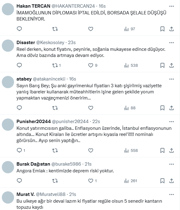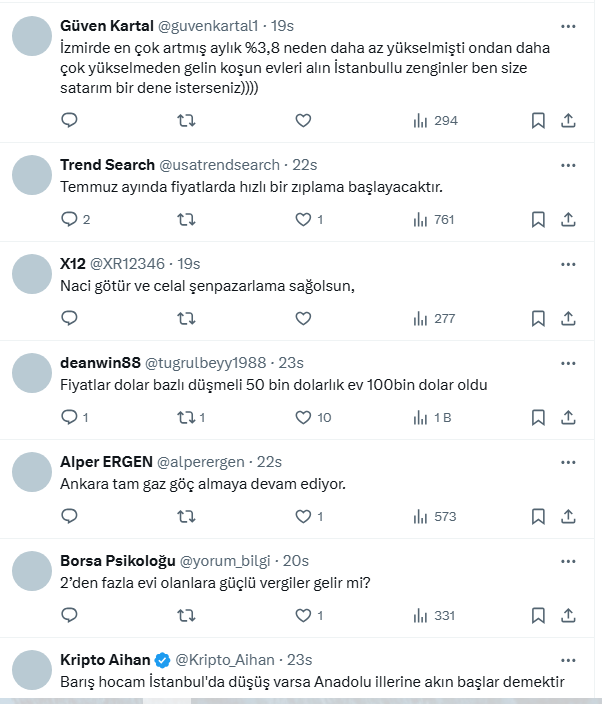 Soydan, sosyal medya hesabı X'ten yaptığı açıklamada, İstanbul'da konut fiyatlarının enflasyonun altında olduğuna vugu yaparak ''İstanbul'da reel düşüş sürüyor.''dedi. İşte Barış Soydan'ın sosyal medya hesabı X'ten yaptığı o paylaşım ve gelen yorumlar...