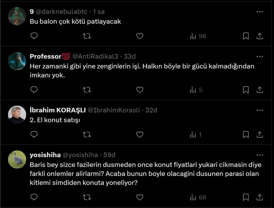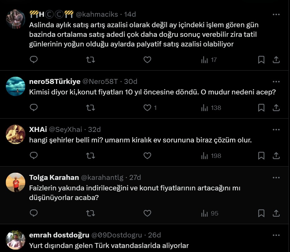 Ekonomist Barış Soydan, https://twitter.com/barissoydan X sosyal medya üzerinden yaptığı paylaşımda konut satışlarındaki artışa dikkat çekti. Konut satışlarındaki artışın mevcut ekonomik koşullarla uygun olmağını belirtti. Barış Soydan paylaşımında şu ifadelere yer verdi: