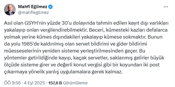 İşte Mahfi Eğilmez'in sosyal medya hesabı X'ten yaptığı o paylaşım...