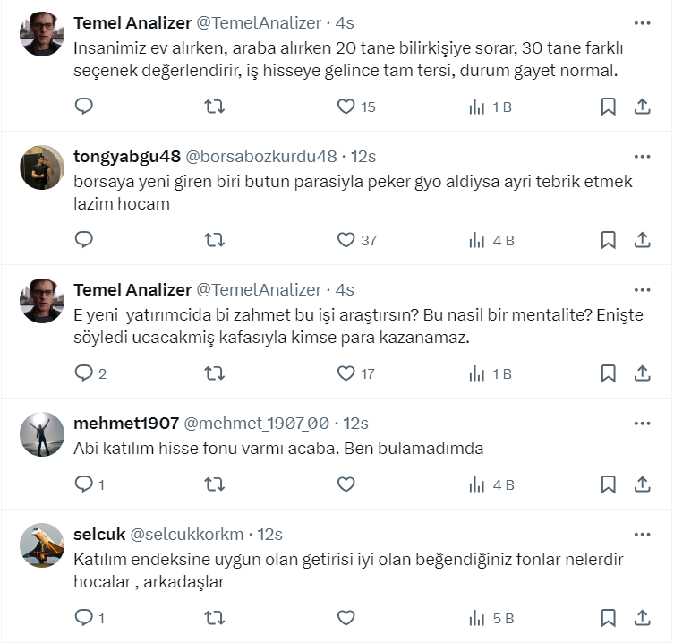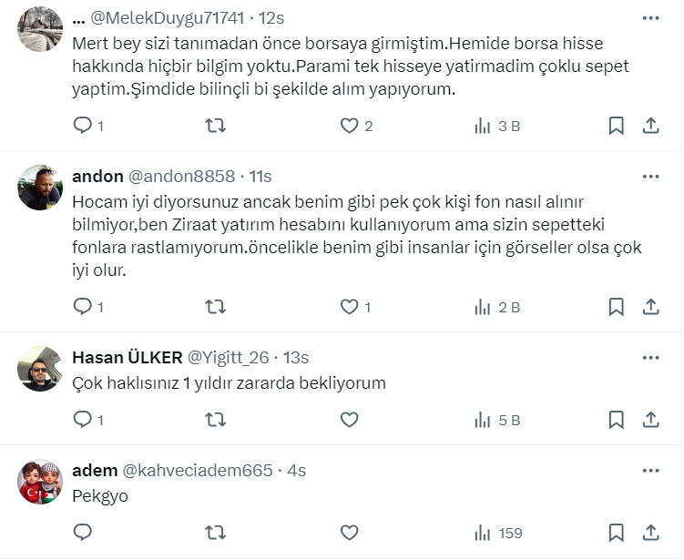 Mert Başaran yaptığı paylaşımda "Yeni başlayan yatırımcı hisse almasın fon alsın!" diyerek, illa ben kendim seçeceğim bu fon şirketleri anlamıyor diyenler ise 20-30 hisse alsın deme nedenini de açıkladı.