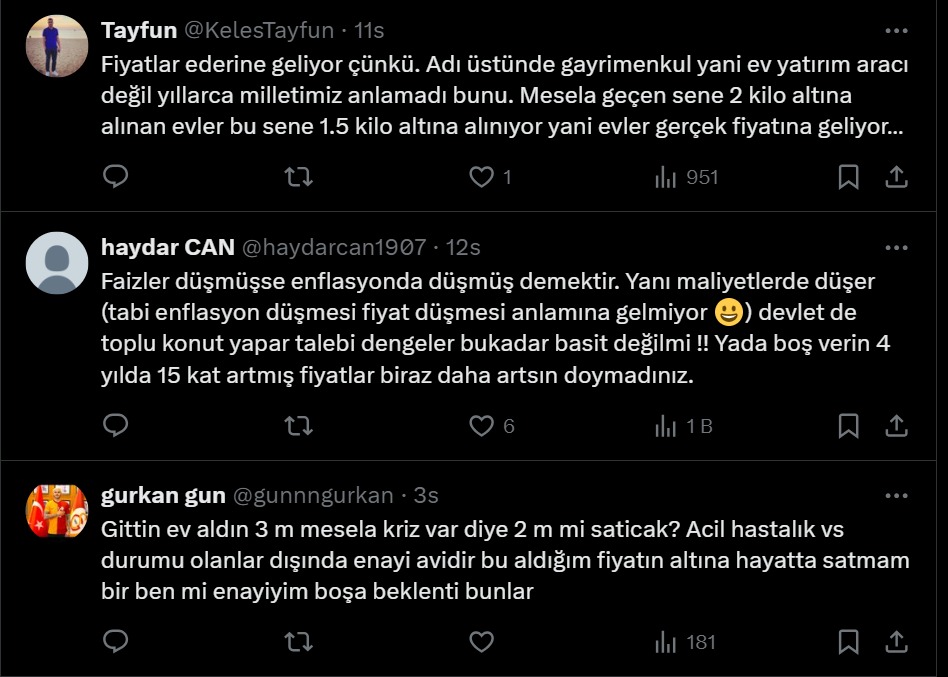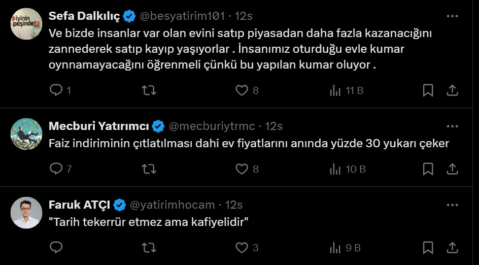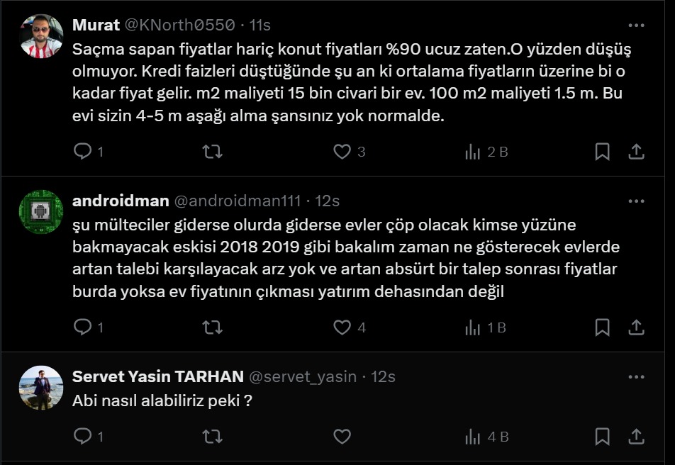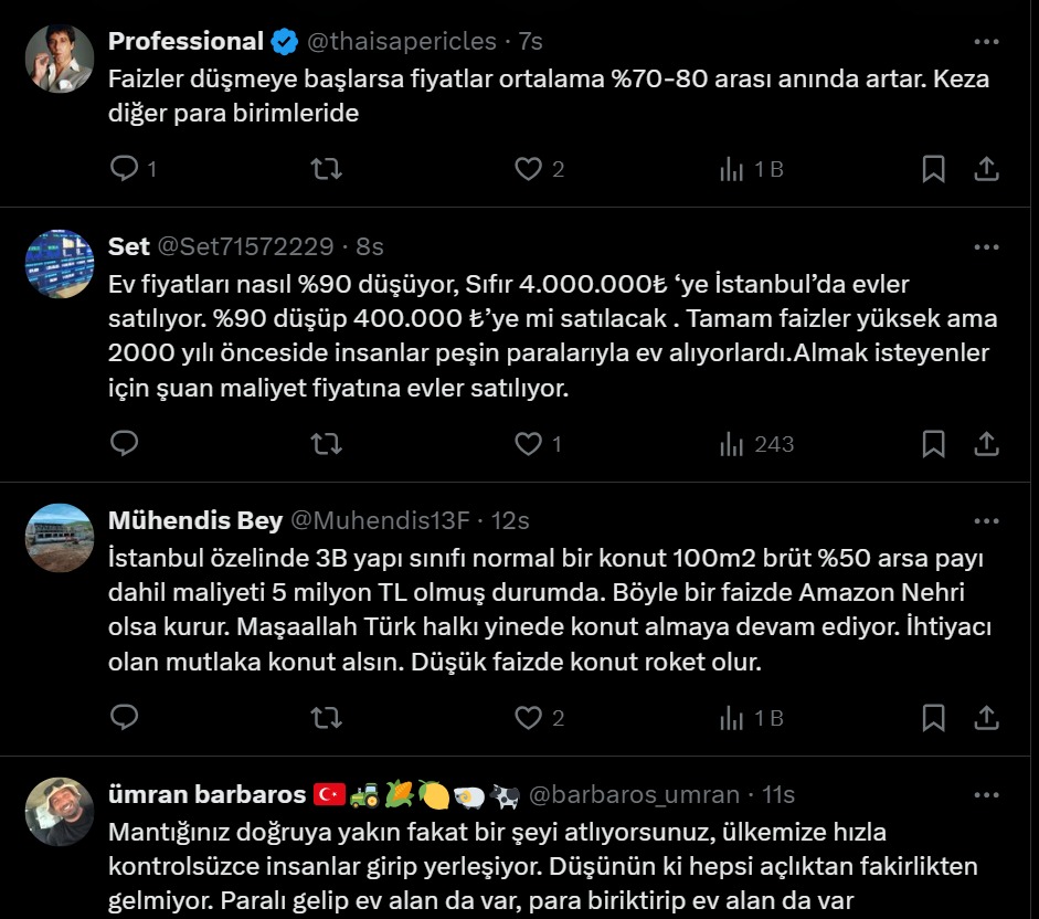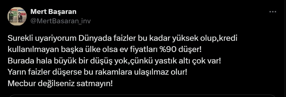 Sürekli uyarıyorum Dünyada faizler bu kadar yüksek olup, kredi kullanılmayan başka ülke olsa ev fiyatları %90 düşer!