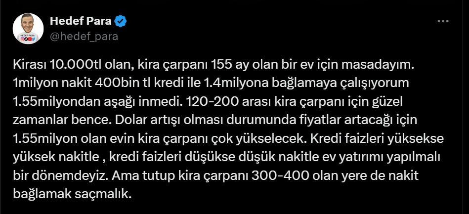 Ekonomideki belirsizlik vatandaşın aklını iyice karıştırırken, ekonomist Mert Başaran evini satmayı düşünenleri uyardı. Başaran, https://x.com/MertBasaran_inv X sosyal medya hesabından yaptığı paylaşımda şu ifadeleri kullandı.