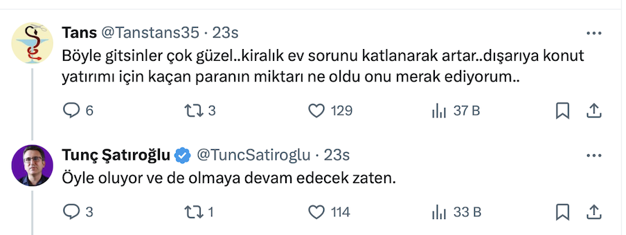 Ekonomist Tunç Şatıroğlu’nun paylaşımı şu şekilde: