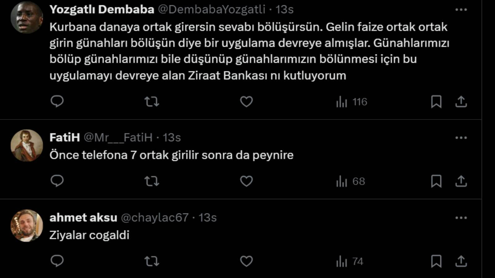 Kredi açıklamasının ardından, Ziraat Bankası eski Genel Müdür Yardımcısı ve Başkent Üniversitesi Uluslararası Finans ve Bankacılık Bölüm Başkanı Prof. Dr. Şenol Babuşcu, https://x.com/senolbabuscu X sosyal medya hesabından yaptığı paylaşımda, “Uzun yıllardır kurban kesiminde 7 kişi bir danaya girilir. Son yıllarda marketler bir karpuzu dilimleyerek 6-7 kişiye satmaya başladı. Bugün ise Ziraat Bankası 1 ev için 5 kişiyle ortak ev kredisi kullandırmaya başladı. Bundan sonra başka neler göreceğiz” dedi. Takipçilerinden yorum yağdı.