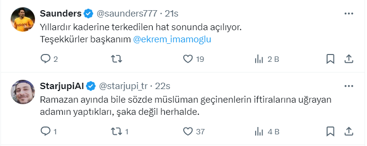 İBB Başkanı Ekrem İmamoğlu'nun paylaşımına gelen yorumlar şu şekilde: