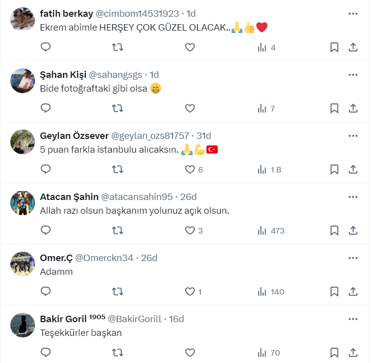İBB Başkanı Ekrem İmamoğlu'nun paylaşımına gelen yorumlar şu şekilde: