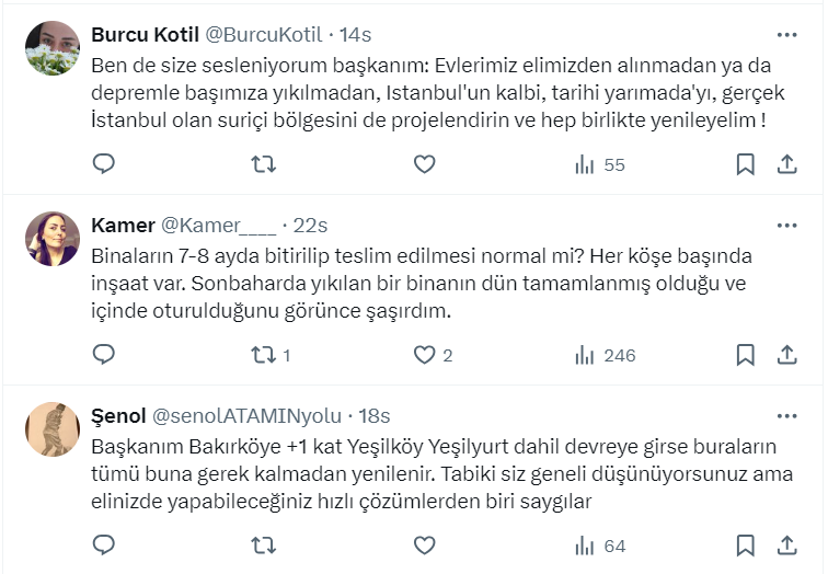 Şehirde son zamanlarda sık sık gündeme gelen kentsel dönüşüm ile ilgili olarak bir paylaşım da İstanbul Büyükşehir Belediye Başkanı Ekrem İmamoğlu'ndan geldi.