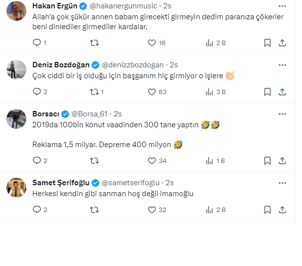 Borsacı@Borsa_61 ''2019da 100bin konut vaadinden 300 tane yaptın . Reklama 1,5 milyar. Depreme 400 milyon''