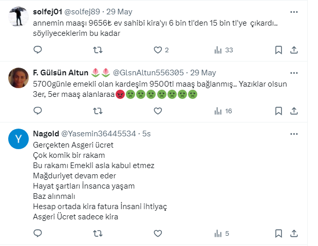 Emekliler temmuz ayında yapılacak zam oranının açıklanmasını merakla bekliyor. Türk-İş bugün açıkladığı verilerine göre mayısta açlık sınırı 18 bin 969 TL, yoksulluk sınırı 61 bin 788 TL olarak açıklandı. Hali hazırda ise en düşük emekli maaşı 10 bin TL. Ankara’da yapılan büyük emekli mitinginde en düşük maaşın asgari ücret seviyesine çıkarılması talep edilmişti.