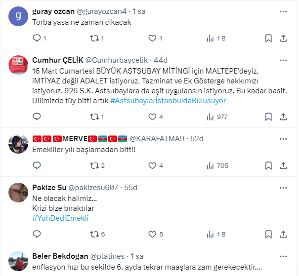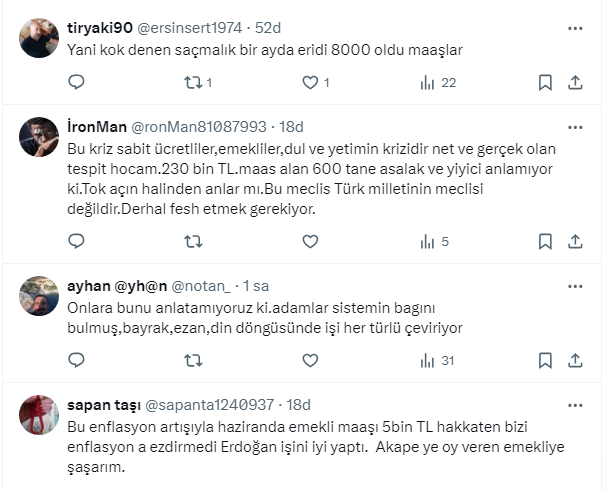 SGK Uzmanı Özgür Erdursun, twitter.com/ozgurerdursun X sosyal medya hesabından yaptığı paylaşımda her geçen gün ücretlerin satın alma gücünün düştüğünü belirterek, “Bu kriz TL ile sabit geliri olanların yani çalışanların ve emeklilerin krizidir” dedi.