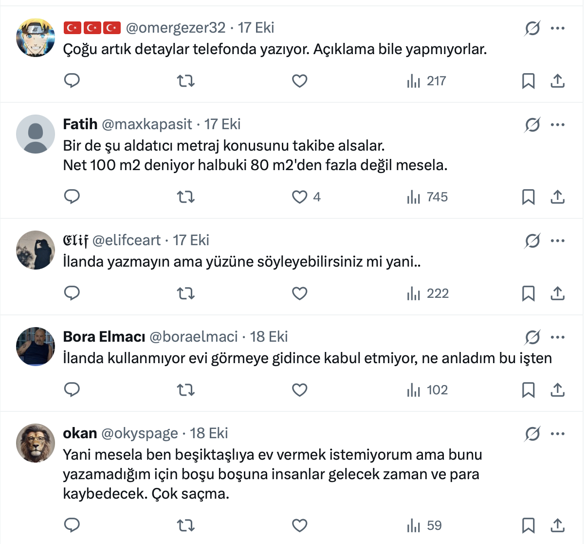 64,4 bin takipçili İnşaat Doktoru resmi sosyal medya hesabı üzerinden yaptığı paylaşımda emlak ilanında kullanılmaması gereken kelimeleri açıkladı.