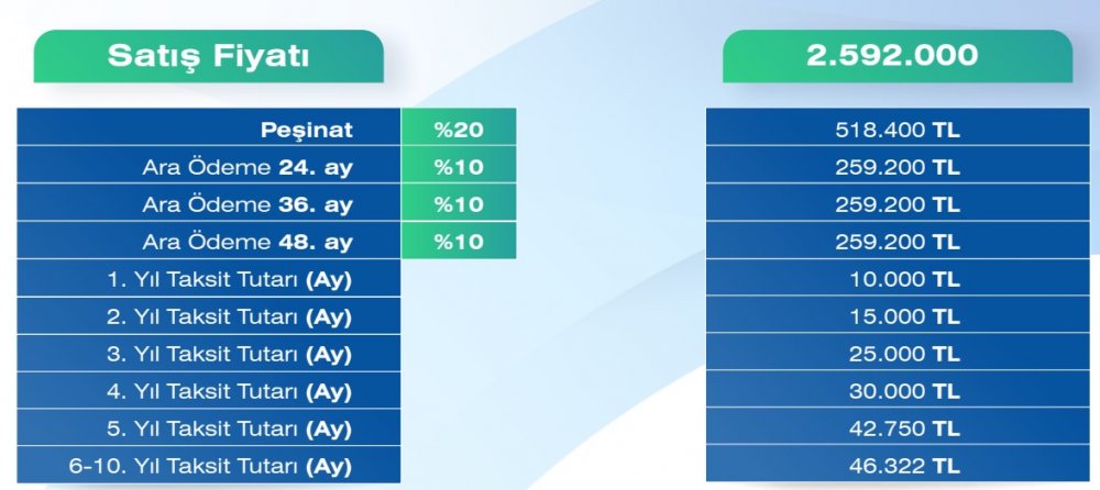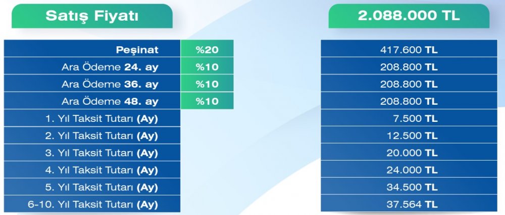 2+1 konutlar için ödeme planı