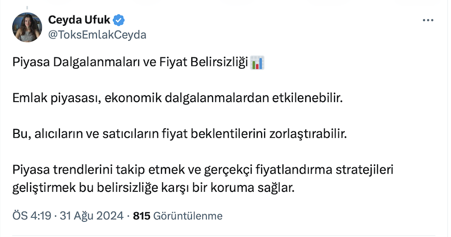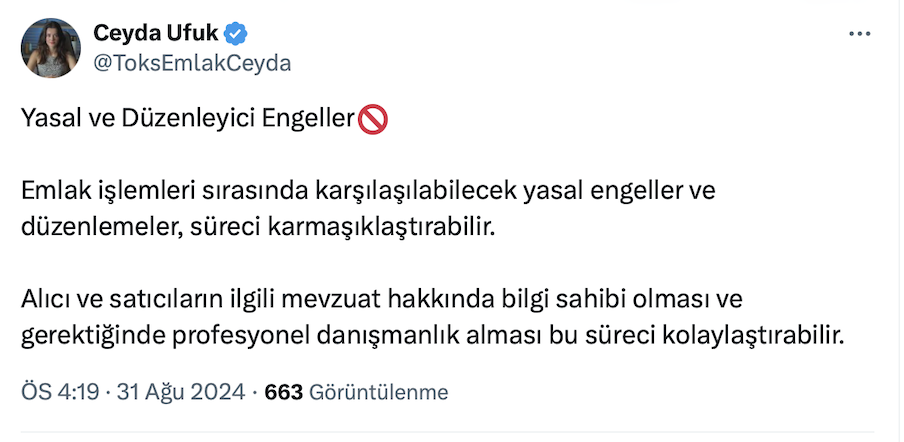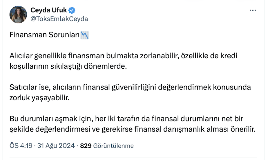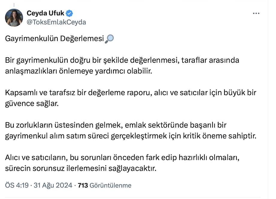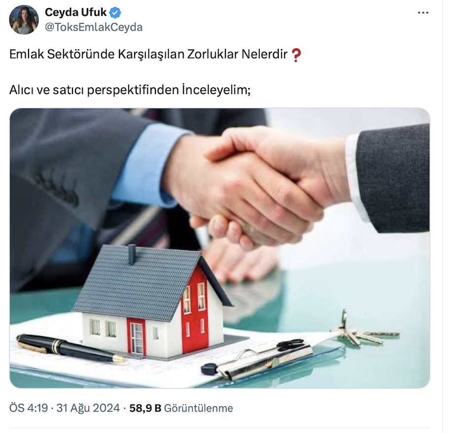 Gayrimenkul Değerleme Uzmanı Ceyda Ufuk resmi sosyal medya hesabı https://x.com/ToksEmlakCeyda üzerinden üzerinden yaptığı paylaşımda Emlak sektöründe karşılaşılan 4 zorluğu açıkladı.