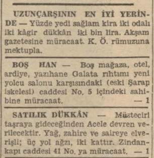 Öte yandan gazetede diğer satılık ve kiralık ilanları şu şekilde: