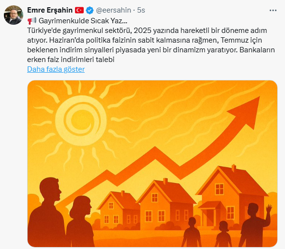 Tapucom kurucusu Emre Erşahin resmi sosyal medya hesabı üzerinden yaptığı paylaşımda Türkiye'de gayrimenkul sektörünün, 2025 yazında hareketli bir döneme adım attığını söyledi.