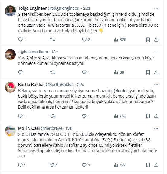 Ez cümle bana göre ORTA/UZUN vade yatırım yapmak isteyenler için en az risk ve en fazla getiri olasılığına sahip yatırım aracı toprak yatırımıdır.