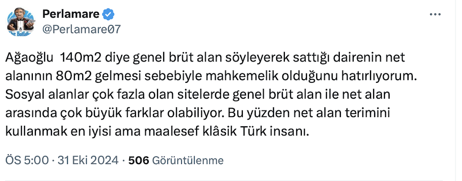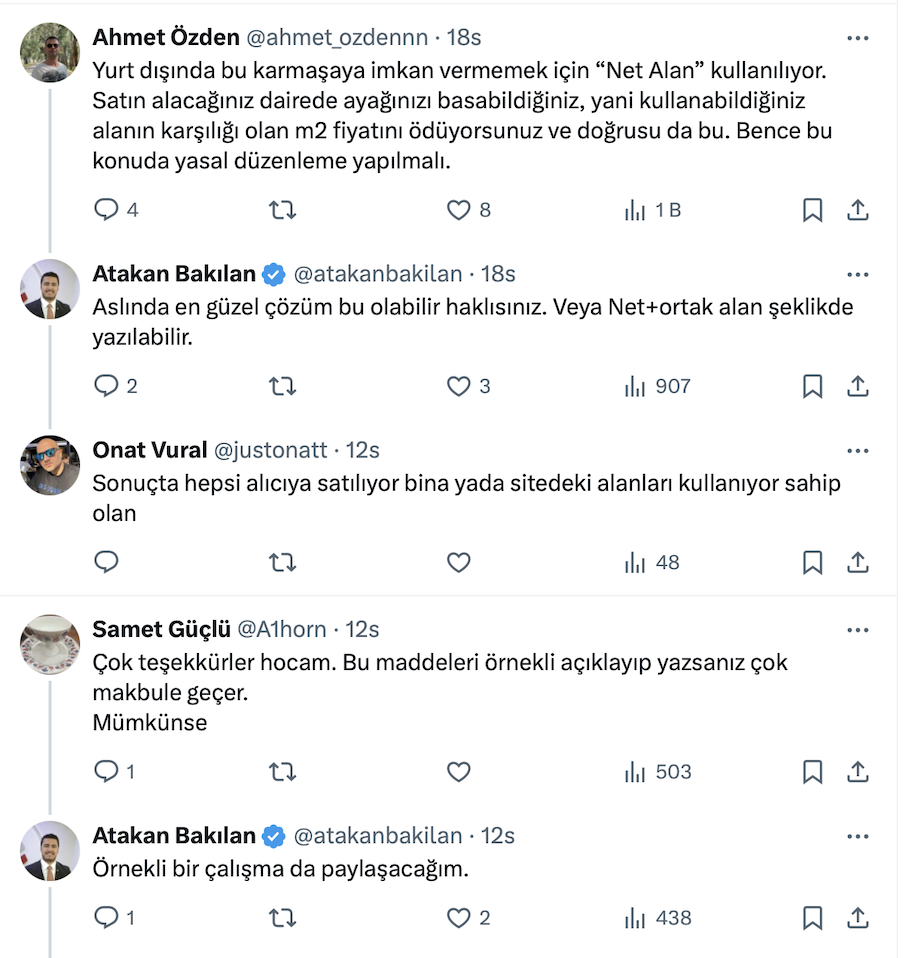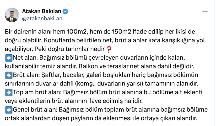 İnşaat Mühendisi, Eskişehir Ticaret Odası Meclis Üyesi ve TOBB Eskişehir Genç Girişimciler Kurulu İcra Komitesi Üyesi Atakan Bakılan resmi X hesabı https://x.com/atakanbakilan üzerinden net ve brüt alanlarla ilgili bir paylaşım yaptı.