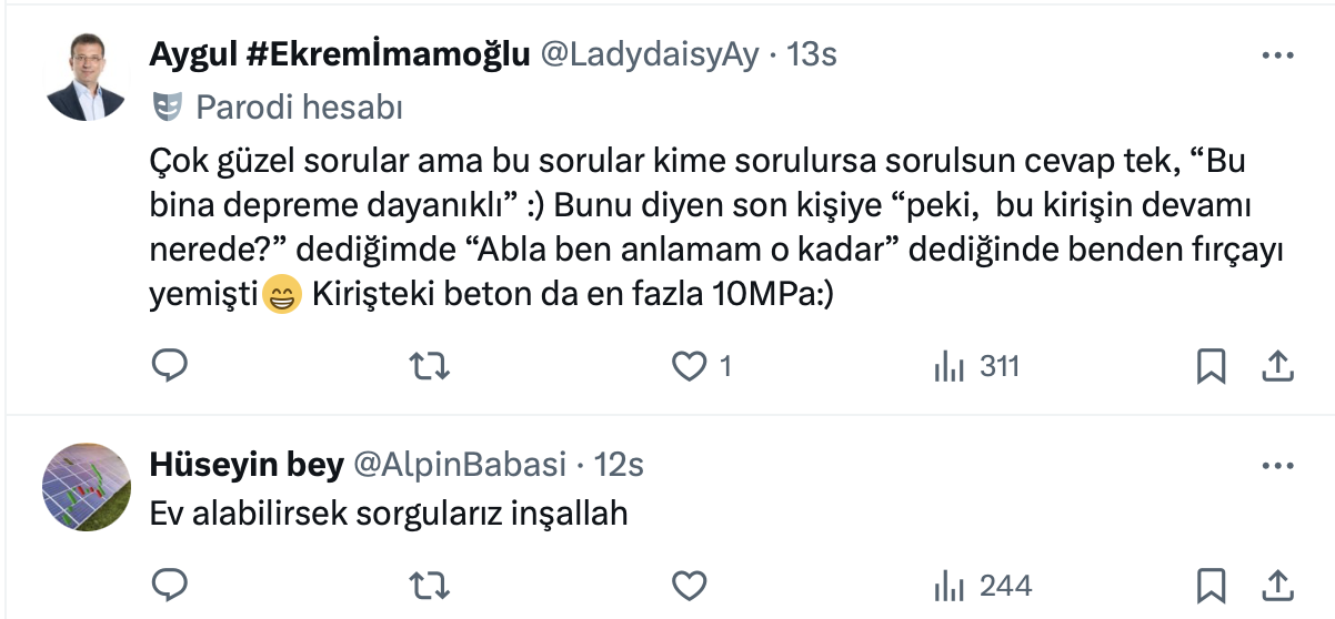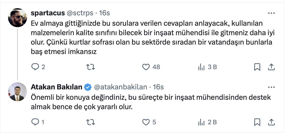 İnşaat Mühendisi Atakan Bakılan'ın paylaşımı şu şekilde: