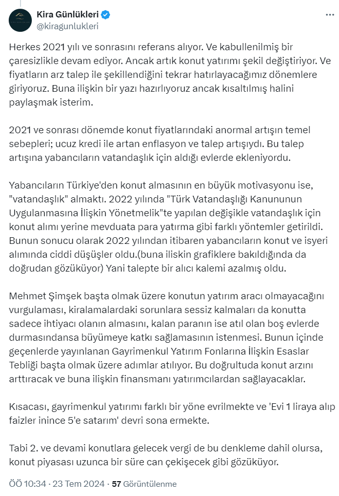 Konut fiyatlarında yaşanan değişim gündemden düşmezken, Trader-Değer Yatırımcısı Yavuz sosyal medya hesabı üzerinden yaptığı "Nasıl yükselecek bu balon ev fiyatları anlamıyorum" diyerek çok konuşulacak bir örnek verdi.