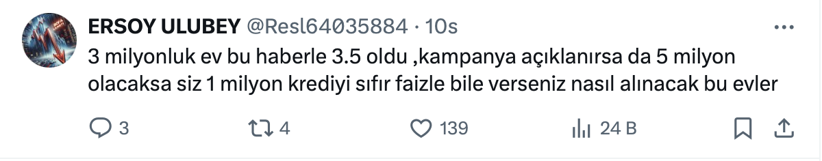 Murat Gültekin, resmi sosyal medya hesabı https://x.com/muratguItekin üzerinden yaptığı paylaşımda, yeni konut kredisi kampanyası geldiğini açıkladı.
