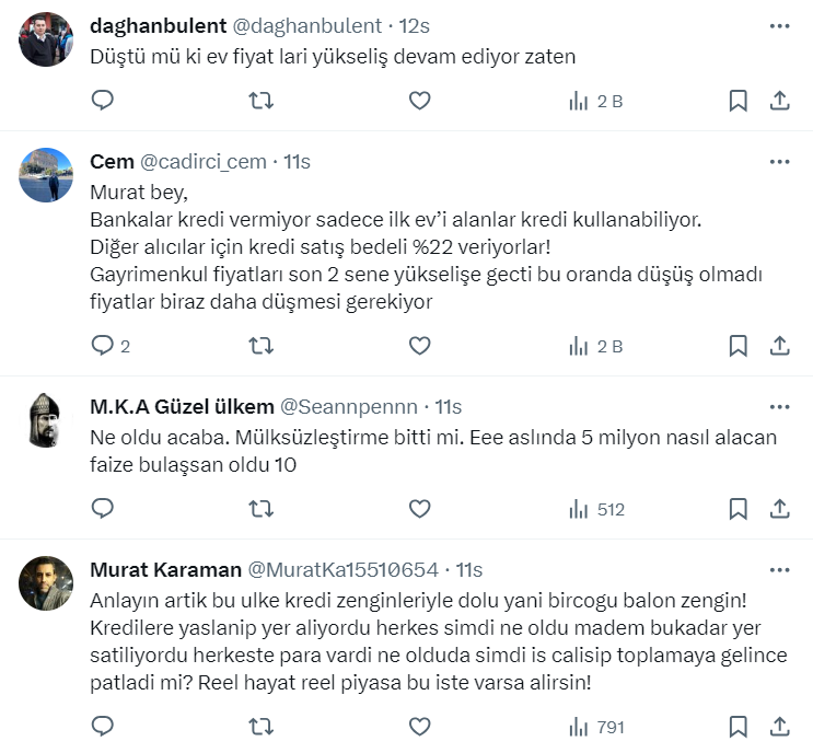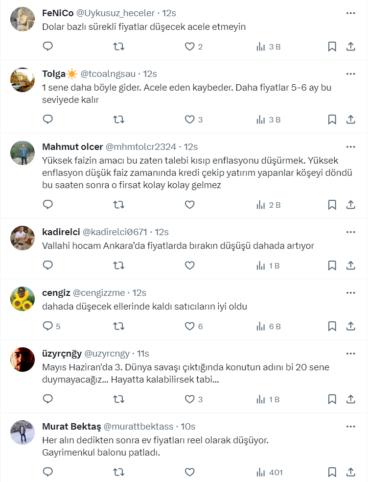 Türkiye genelinde konut fiyatlarındaki düşüş altıncı ayda da devam ederken kiralamalara da talep azaldı. Peki konut fiyatları ne zaman artacak? İşte Gayrimenkul Uzmanı Murat Gültekin'in o paylaşımı ve paylaşıma gelen yorumlar...