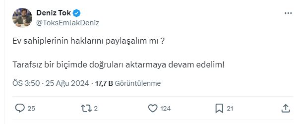 Girişimci, Tok’s Emlak ve D.T İnşaat Kurucusu Deniz Tok sosyal medya hesabından ev sahiplerinin haklarını açıkladı. İşte ev sahibi hakları...