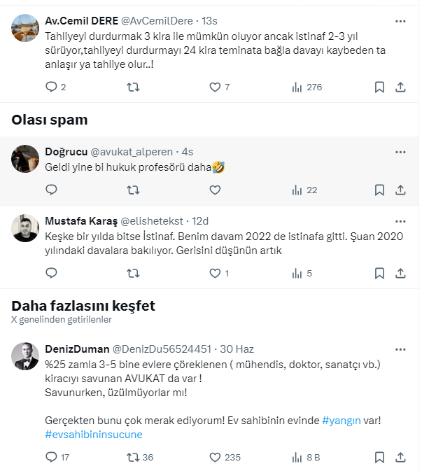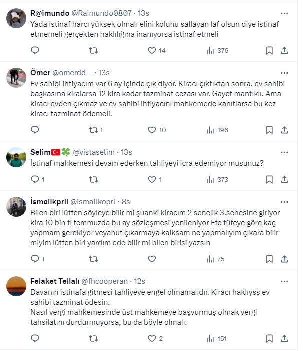 İstinaf, ilk derece mahkemesi tarafından verilen kararların hem usul yününden hem de esas yönünden bir üst derece mahkemesince incelenmesi anlamına geliyor. İstinaf mahkemeleri ilk derece mahkemeleri tarafından verilen nihai kararları inceleme merciidir. Yani istinaf, ilk derece mahkemelerinin vermiş olduğu kararlara karşı bir itiraz yolu olarak karşımıza çıkıyor. Ev sahibi ve kiracı arasındaki sorunlar da son olarak istinaf mahkemelerine taşınıyor. Bu süreç bir yıl kadar süreyi uzatsa da sonuç genellikle değişmiyor. Yani ev sahibi yine mahkeme sonrası kazansa da bir yıllık bir kayba uğruyor. Konuyla ilgili sosyal medya hesabı X'ten paylaşım yapan Temuçin Alper, 'bu zülmü sürdürmenğn manası nedir?'' diye sordu. Bakın vatandaşlardan ne yorum geldi. İşt eo paylaşım ve gelen yorumlar...