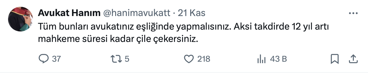 Avukat Hanım’ın paylaşımı şu şekilde: