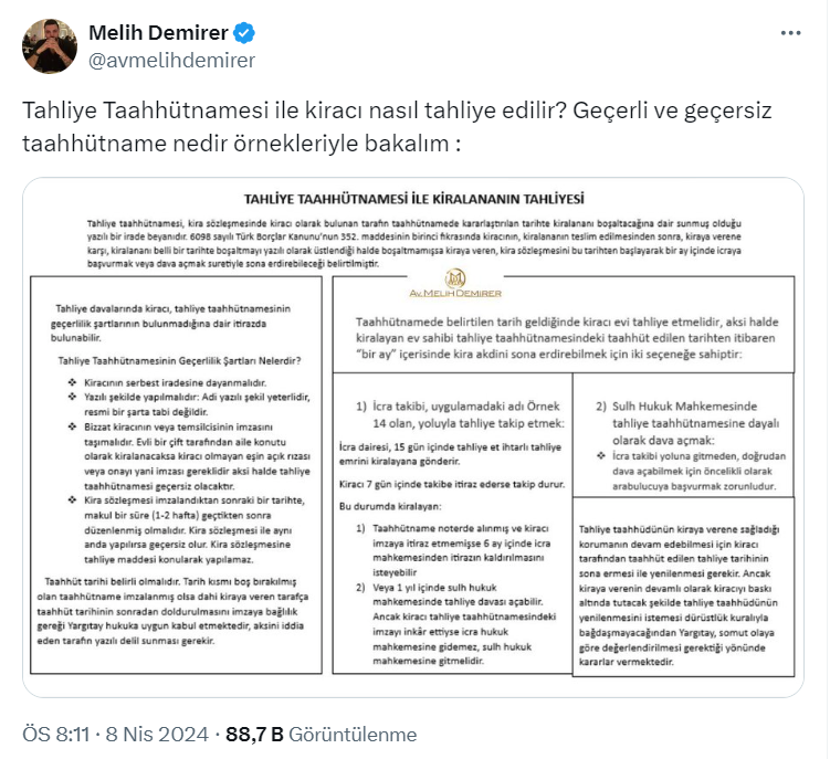 39,4 bin takipçili Avukat Melih Demirer resmi sosyal medya hesabı https://twitter.com/avmelihdemirer üzerinden geçerli ve geçersiz taahhütname örneklerini paylaştı.