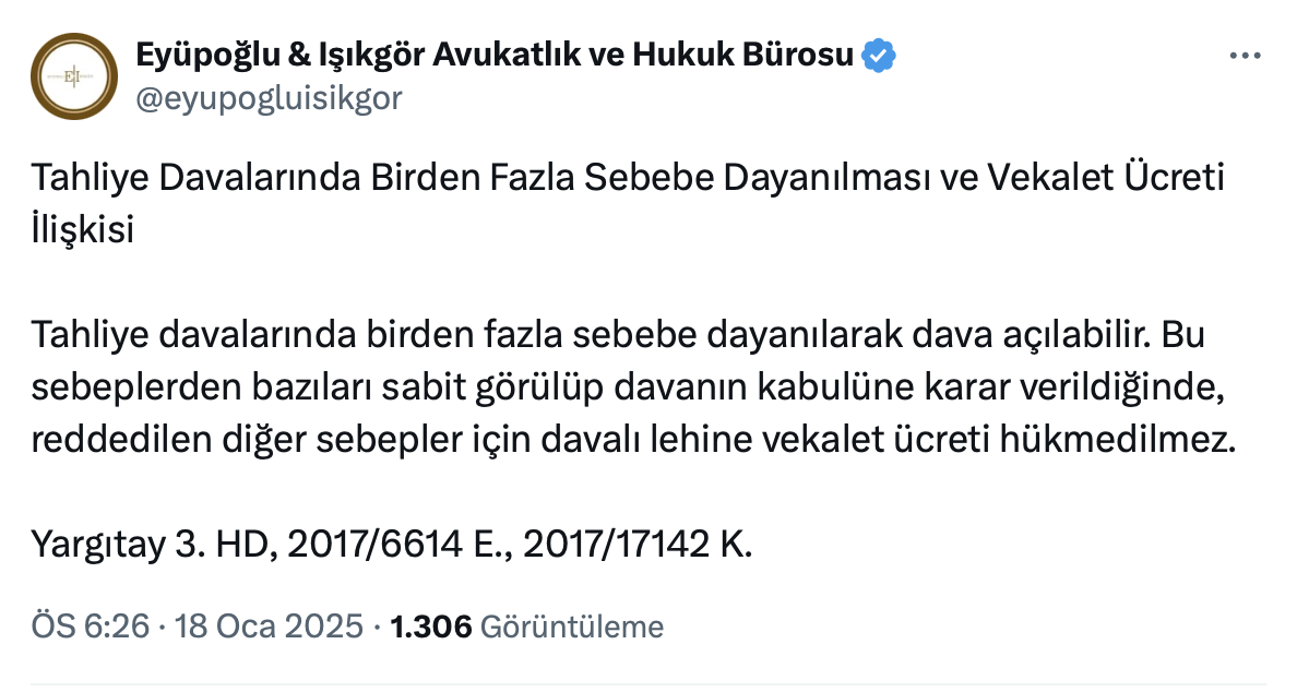 Eyüpoğlu - Işıkgör Avukatlık ve Hukuk Bürosu'nun paylaşımı şu şekilde: