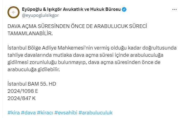 Eyüpoğlu & Işıkgör Avukatlık ve Hukuk Bürosu sosyal meya hesabı X'ten binlerce ev sahibi ve kiracının gözden kaçırdığı ayrıntıyı tekrar açıkladı.
