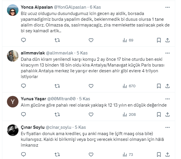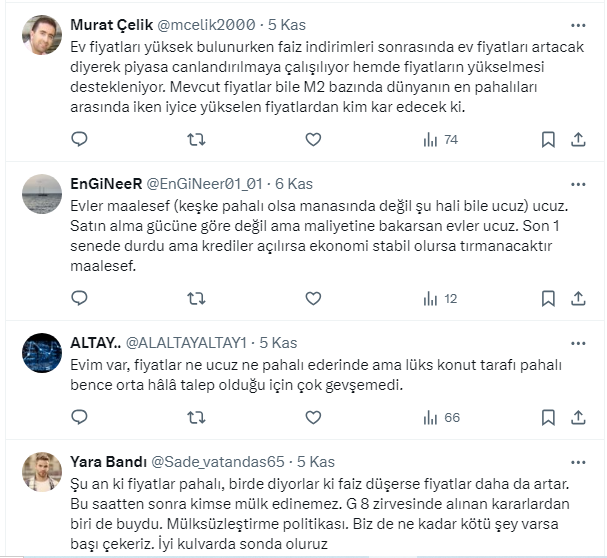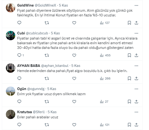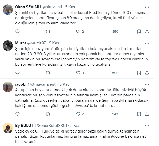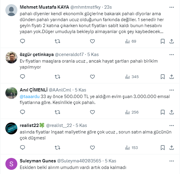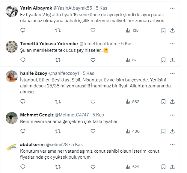 Peki vatandaşlar konut fiyatlarıyla ilgili neler söyledi? İşte o paylaşıma gelen yorumlar...