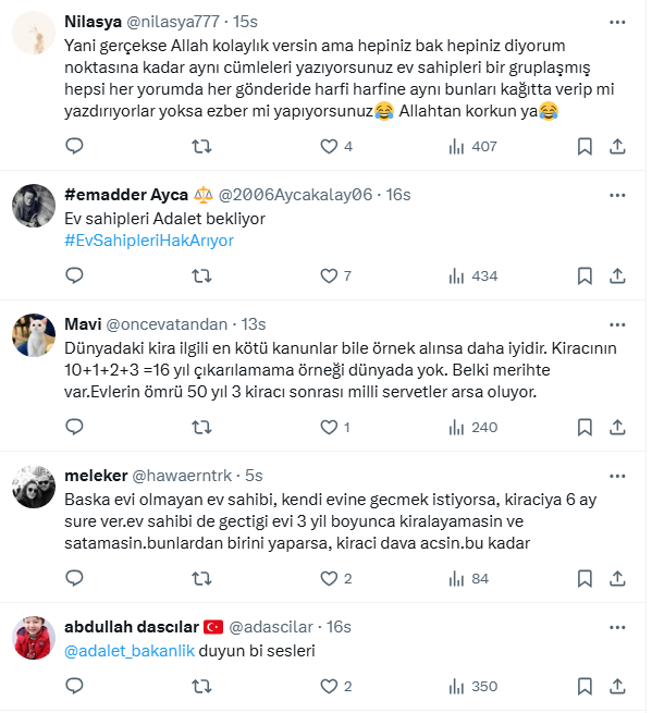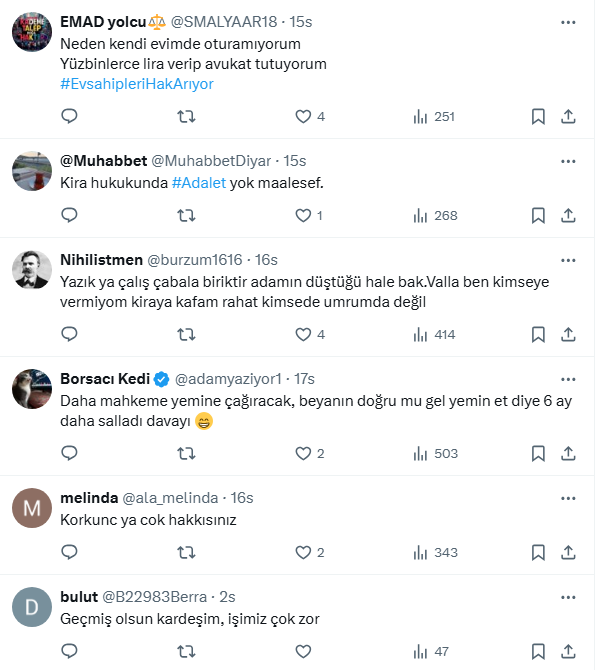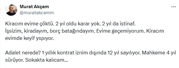 Ev sahibi mağdurlarından olan Murat Akçam da sesini sosyal medyadan duyurmaya çalışanlar arasında. Akçam ''Kiracım evime çöktü. 2 yıl oldu karar yok. 2 yıl da istinaf.