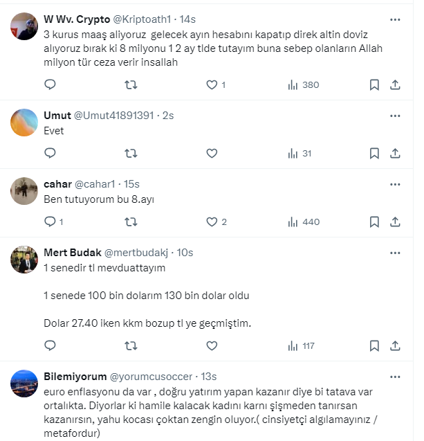 Türk Lirası döviz kurları karşısında değer kaybederken, kripto fenomeni Murat Ali Calman, resmi sosyal medya hesabı üzerinden yaptığı paylaşımda 'TL'ye güven var mı?' sordu. Peki vatandaş ne yanıt verdi.