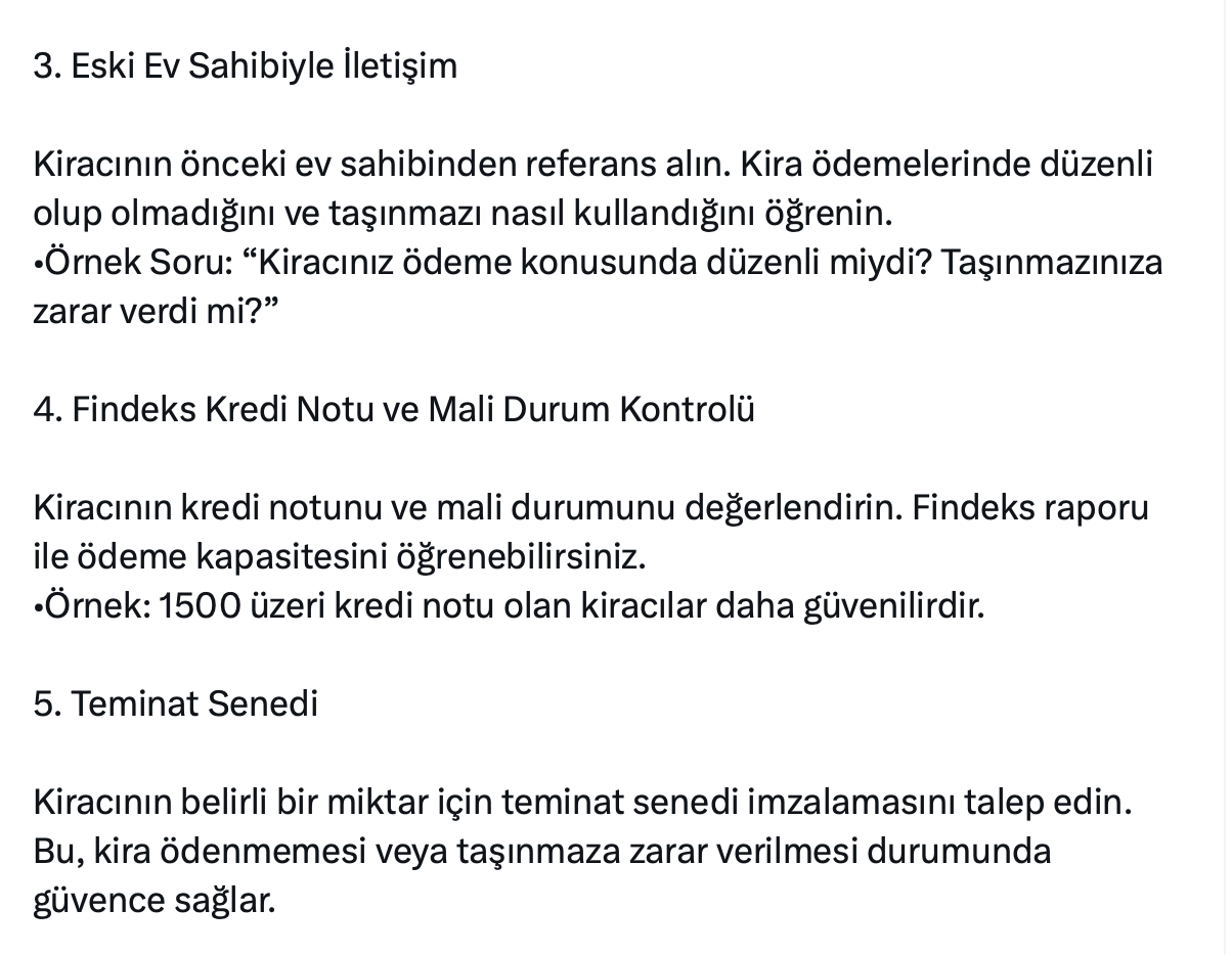 •Örnek Soru: “Kiracınız ödeme konusunda düzenli miydi? Taşınmazınıza zarar verdi mi?”