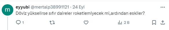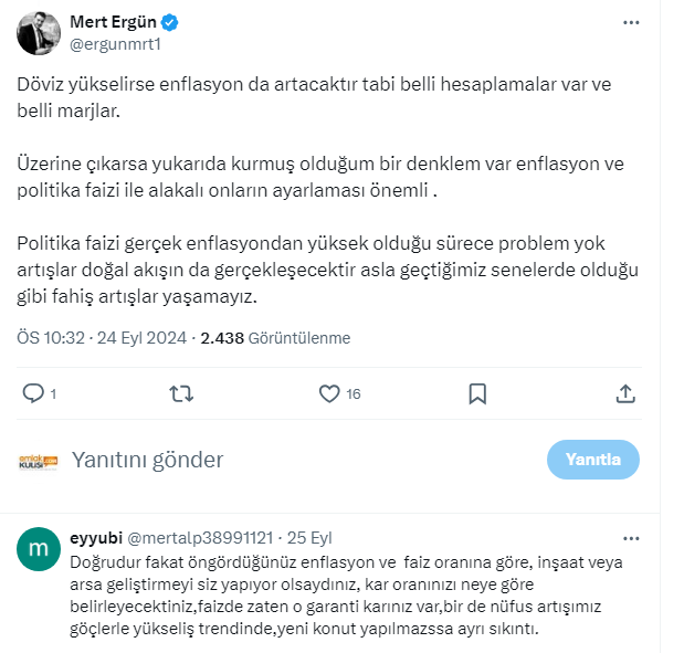 111 bin takipçili girişimci Mert Ergün https://x.com/ergunmrt1 X sosyal medya hesabından yaptığı paylaşımda, gayrimenkul piyasasında fiyat artışlarının hiçbir zaman eskisi gibi olmayacağını söyledi.