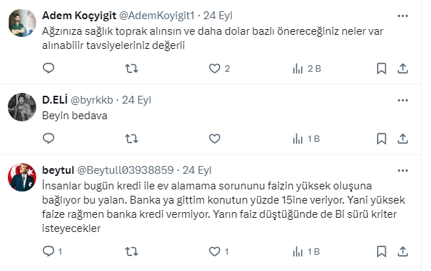 Peki takipçileri konut fiyatlarıyla ilgili neler söyledi? İşte o paylaşıma gelen yorumlar...