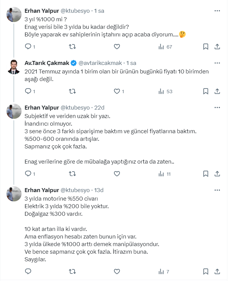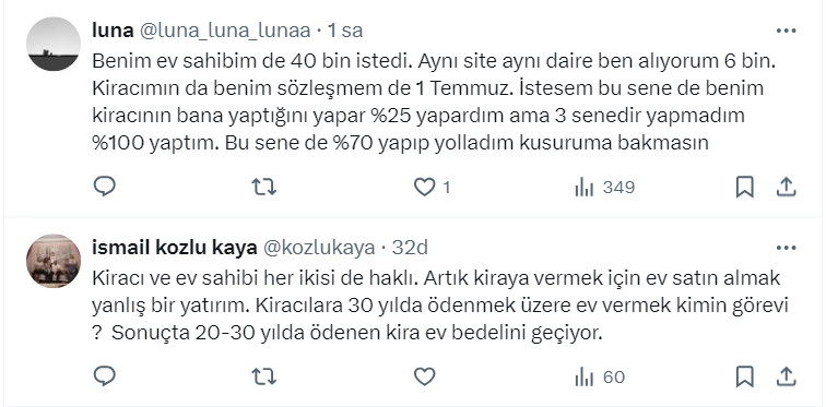 "Kiracılık" sorununun en başından beri bu işin iki tarafının da haklı olduğu görüşündeyim. Zira son 3 senede enflasyon %1000. Ağustos 2021 yılından itibaren başlayan barınma sorununun kaynağı hükümetin yanlış ekonomik politikalarıdır. Yani kiraya verenler de kiracılar da haklıdır. Bir taraf evininin değerini korumaya çalışırken, diğer taraf da %1000 enflasyonla geçim sıkıntısı yaşayıp aynı zamanda maaşının yarısı kadar kira vermek istememektedir.